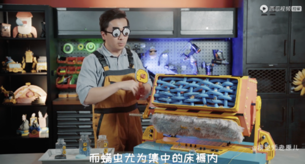 一開始,戴森選用了有726萬粉絲的西瓜視頻頭部達人“模型師老原兒”拉動話題熱度。“模型師老原兒”為其打造了「灰塵你別跑」的模型視頻,以“除塵四不”為切入點,講述灰塵的危害以及高效除塵的方法。打破消費者以往清潔誤區,強化戴森“灰塵專家”的形象。