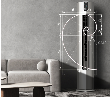 首先是方圓結合的外機造型,鈦金灰/皓雪白的高級色彩搭配鉆石形底座,擺在家中更像是一座藝術品。其次長虹客餐廳共享空調采用的黃金比例出風口,根據中國家庭客廳布局和活動習慣,重新定義柜機風口上下比例,蘊藏人體工程學理念,近距離不直吹,遠距離強勁送風。