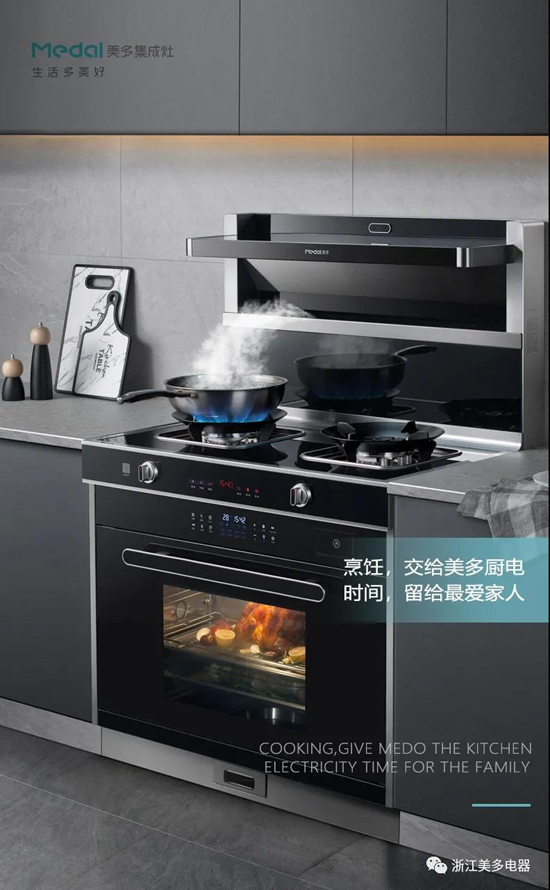 燃氣灶、油煙機傳統廚電組合的形態已漸漸被取代,隨著健康生活方式的興起,健康蒸、時尚烤、空氣炸、解凍、發酵等功能成為當代人的高頻需求。當需求擴張遇到空間約束,美多品牌深耕產品研發,實現產品集成化、智能化不斷迭代。
