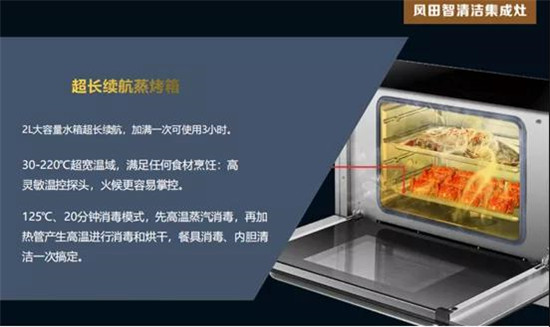 此外,為了貼合用戶在健康安全方面的需求,蒸烤箱擁有125℃消毒模式,先高溫蒸汽消毒后加熱管高溫消毒烘干,餐具消毒、內膽清潔一次搞定。