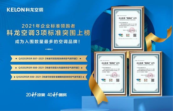 科龍空調已連續兩年成功入圍企業標準“領跑者”,2020年科龍空調受邀參加企業標準“領跑者”大會,企業標準Q/0202RSR 682-2020《轉速可控型房間空氣調節器》經評估榮獲2020年企業標準“領跑者”。本年度再次入選"領跑者"名單,充分證明了市場和行業對科龍空調品質與實力的認可。