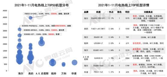 新周期特征三:產品升級在探索。行業開始向中高端轉型,電熱線上均價998元,線下均價1675元,燃熱線上均價1666元,燃熱線下均2591元,皆超過了2019、2020年均價,逐漸追平2018年均價。