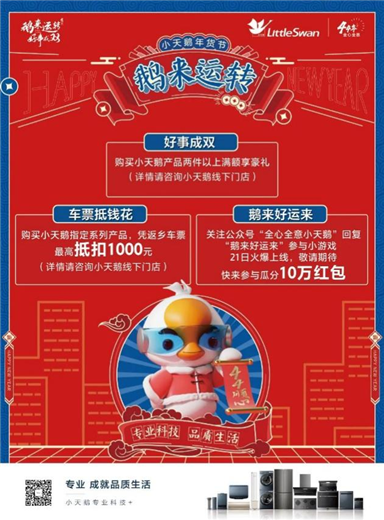 “車票抵錢花”:購買小天鵝指定產品憑返鄉車票最高抵扣1000元。