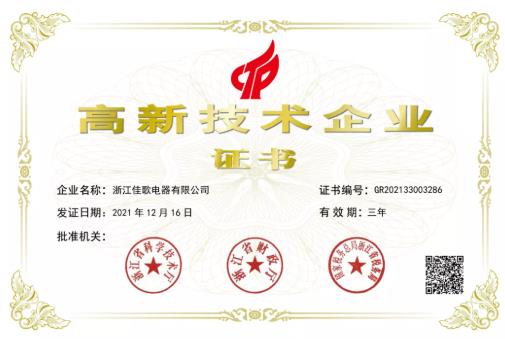 以榮獲《高新技術(shù)企業(yè)》證書(shū)為起點(diǎn),佳歌集成灶正式邁入高新技術(shù)企業(yè)發(fā)展新階段,佳歌自主研發(fā)創(chuàng)新的步伐將加速向前!