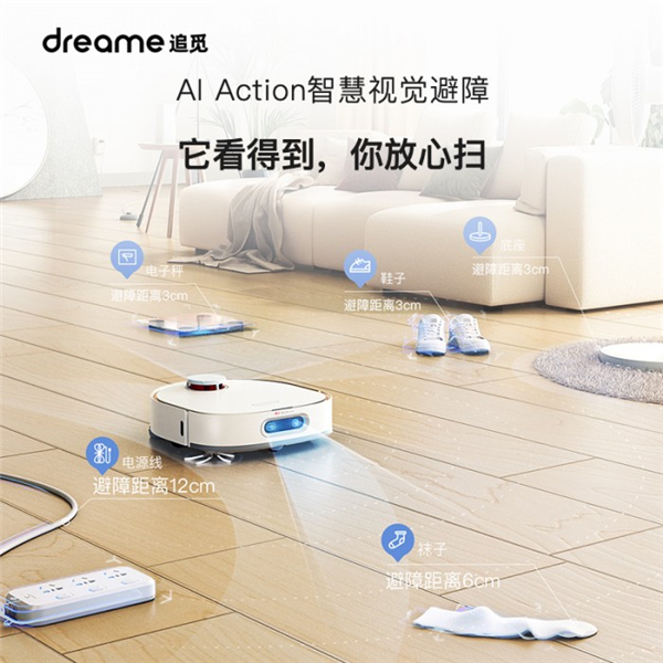 在避障方面,該款機器人采用ToF+AI視覺識別系統(tǒng),相比傳統(tǒng)避障方式,W10 Pro具備更高的物體識別準確度,通過識別、理解物體類型,如襪子、電源線、體重秤、鞋子、吧臺底座等地面常見障礙,做出相應的避障規(guī)劃和更優(yōu)的清潔路線。