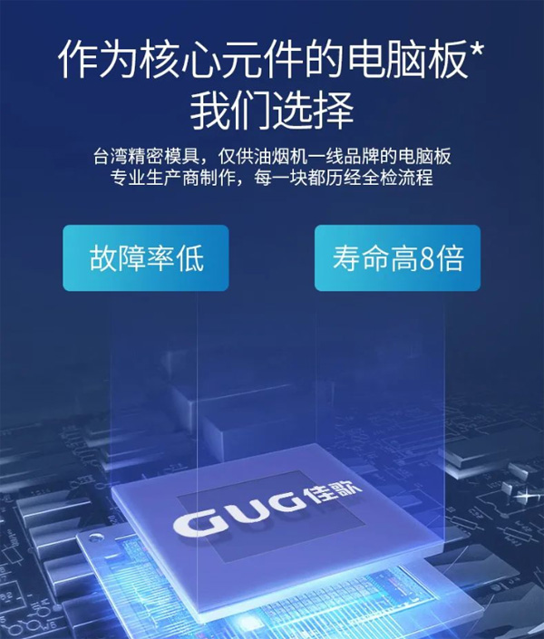 佳歌集成灶下置灌膠電腦板,防水防塵且離發熱源——灶臺的距離足夠遠,不會有受熱損壞的風險。卸下兩個螺絲電腦板就可以直接拿出來,售后維修更換簡單便捷。