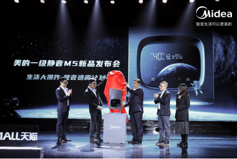 在全場矚目下,主會場伴隨著太空艙門的大屏特效,五位嘉賓共同開啟艙門,“生活大爆炸 噪音逃離計劃”的啟動儀式正式開始,張斌總與劉院長揭開了期待已久的新品面紗,與大家一起見證超級新品一級靜音燃氣熱水器M5的亮相。