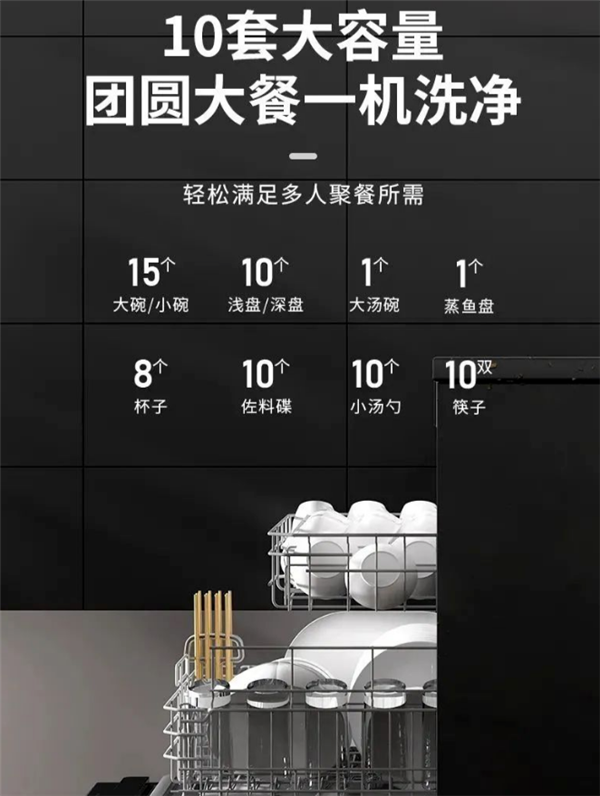 家里人多也無需擔(dān)心,億田XE92P集成水槽洗碗機(jī),10套超大容量,輕松滿足四世同堂家庭所需。