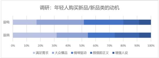 在此前京東發(fā)起的一項(xiàng)調(diào)研中,分析35歲以下人群購(gòu)買(mǎi)廚房電器/廚具的動(dòng)機(jī)可見(jiàn),年輕人購(gòu)買(mǎi)廚房電器時(shí),受大眾口碑影響很大,而對(duì)廚具的顏值、設(shè)計(jì)感(增加人設(shè))的敏感度明顯更高。比如近幾年年輕人尤其是女性熱衷購(gòu)買(mǎi)的顏值琺瑯鍋,無(wú)論是馬卡龍色還是鳶尾紫色,擺在廚房就是一道靚麗的風(fēng)景線。京東春季家裝節(jié)數(shù)據(jù)顯示,鍋具顏值擔(dān)當(dāng)?shù)拇砜岵市驴瞵m瑯鍋在開(kāi)門(mén)紅的前28小時(shí)內(nèi)成交額同比增長(zhǎng)15倍。