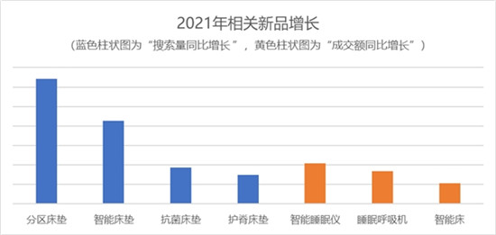 與其它空間不同,臥室內(nèi)物品無(wú)論從視覺(jué)上還是材質(zhì)上可以歸納為一個(gè)字:親膚;比如“面包床”這種包裹性較強(qiáng),同時(shí)視覺(jué)效果上更具親和力的產(chǎn)品,以及乳膠枕、床墊,甚至包括助眠儀、按摩儀等產(chǎn)品的材質(zhì),更具有安全性和親膚性,京東上相關(guān)搜索情況顯示,用戶(hù)在搜索臥室內(nèi)相關(guān)產(chǎn)品時(shí),對(duì)安全、環(huán)保、凈化等關(guān)鍵字的敏感度高于平均值650%。