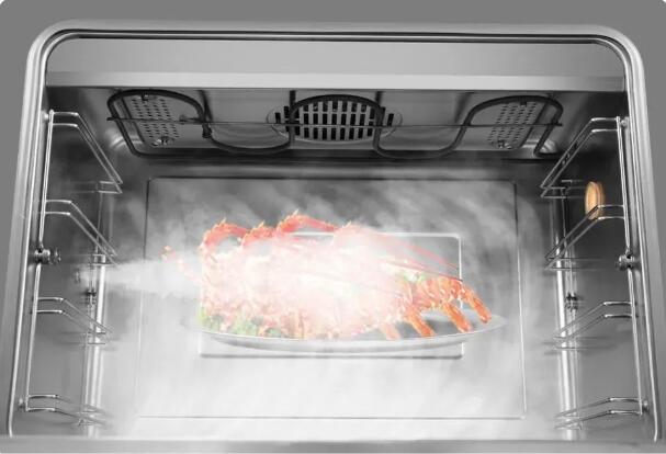 佳歌集成灶蒸烤系列具備70L大容量蒸烤箱,蒸箱采用食品級蒸汽發(fā)生器直噴速熱,高速直噴蒸汽迅速滲透食物肌理,蒸得快又透。烤箱采用上下發(fā)熱管加熱,曲形設(shè)計發(fā)熱管+上置循環(huán)風機確保腔體內(nèi)熱風對流均勻包裹美食,實現(xiàn)360°全方位立體烘烤。