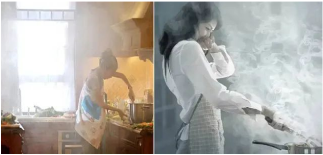 部分冷凝成霧和油煙混合成可見(jiàn)的油煙霧