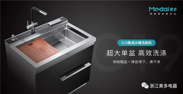 美多集成水槽洗碗機搭載了專業洗碗機,6達清洗模式解決各類餐具,烘干除濕二合一,解放雙手保障了全家餐具健康。