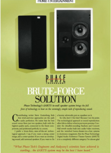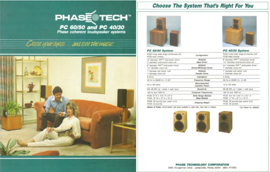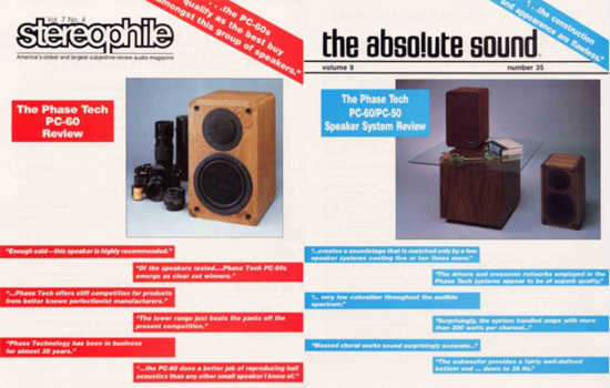 1983年,PHASE品牌成立的首款型號(hào),一代傳奇PC60面世,該型號(hào)采用了PHASE三大獨(dú)家技術(shù):專利平面固體活塞單元、絕對(duì)菲思寬聲場分頻器和專利軟球頂高音單元,整套系統(tǒng)包括一對(duì)PC60 6.5寸低音1寸高音書架音箱和一只PC50 10寸單元全向低音炮,產(chǎn)品面世后其澄澈的音質(zhì)和澎湃的臨場感引起行業(yè)極大的震動(dòng),美國《Stereophile》(發(fā)燒天書)將其評(píng)為1983年度最佳書架音箱。PHASE產(chǎn)品開始銷往全球各地,80年代進(jìn)入中國時(shí)是發(fā)燒友們熱捧的進(jìn)口音響品牌之一(中國人稱之為美國飛磁)。