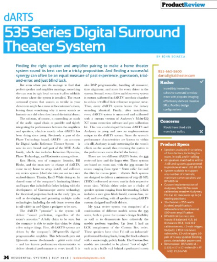 2006年,dARTS DCB 525系列獲《Home Theater》雜志(美國家庭影院類專業(yè)媒體)封面推薦,雜志主編評(píng)其為“毫無疑問,這是我聽過的最好的系統(tǒng)之一。”