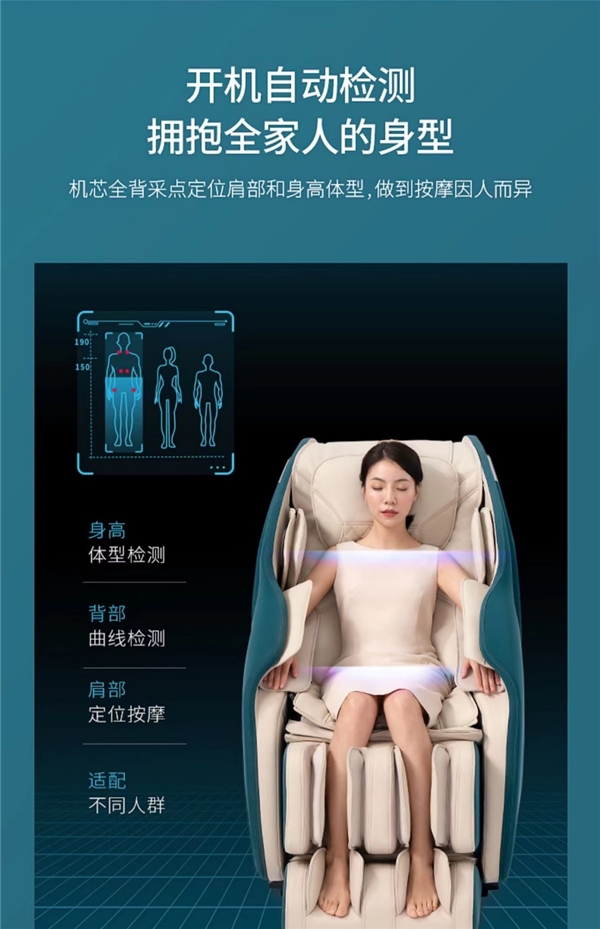 奧佳華OG-7508按摩椅擅長(zhǎng)“理解”,它的開(kāi)機(jī)自動(dòng)檢測(cè)功能,讓它能夠全面讀懂她的所想所求。通過(guò)對(duì)全背進(jìn)行分析采點(diǎn),來(lái)定位肩部和身高體型,讓按摩因人而異,“理解”每一個(gè)不同體型年紀(jì)母親的酸痛與勞累。一共配置了6套按摩程序,能夠滿足她的日常按摩需求,并適配不同居家放松場(chǎng)景,無(wú)論是加班解疲、追劇娛樂(lè),還是美容養(yǎng)生、睡前助夢(mèng),都能為她打造一個(gè)專(zhuān)屬的愜意角落,在這個(gè)角落,她不用做溫柔解意的母親,她只需要閉上眼去被“理解”、被安排,享受按摩的愉悅。