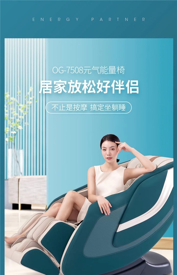 奧佳華OG-7508元?dú)饽芰恳巫鳛榫蛹倚蓍e放松神器,有精煉的按摩技藝,也有貼心的人文關(guān)懷,這個(gè)母親節(jié)來(lái)天貓蒙發(fā)利旗艦店把它帶回家,把幸福的色彩填進(jìn)這個(gè)被時(shí)光雕琢出的美人的每一道皺紋里。