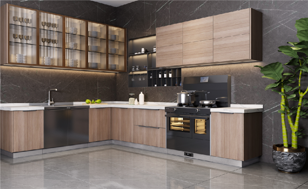 L型廚房,在收納上更為從容,吊柜空間更充裕,搭配億田集成灶+億田集成水槽,占地不過一平米,烹洗功能卻高度集成,從此臺面不再雜亂無章,做飯也無需手忙腳亂,讓烹飪變成享受。