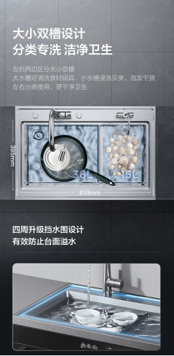 大小雙槽清洗設計,分類專洗潔凈衛生更放心