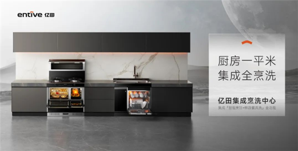 2022年,億田再次跳出廚電單品思維,從整體廚房場景的宏觀維度,推出“億田集成烹洗中心”,通過一臺蒸烤獨立集成灶+一臺集成水槽洗碗機的套系化組合,完成『智能烹飪+鮮蔬餐具洗』全功能覆蓋,從而打通“食材接入-烹飪產出-餐后凈洗”廚房全鏈路,將烹飪前、中、后段的諸多問題集中于一平米解決。
