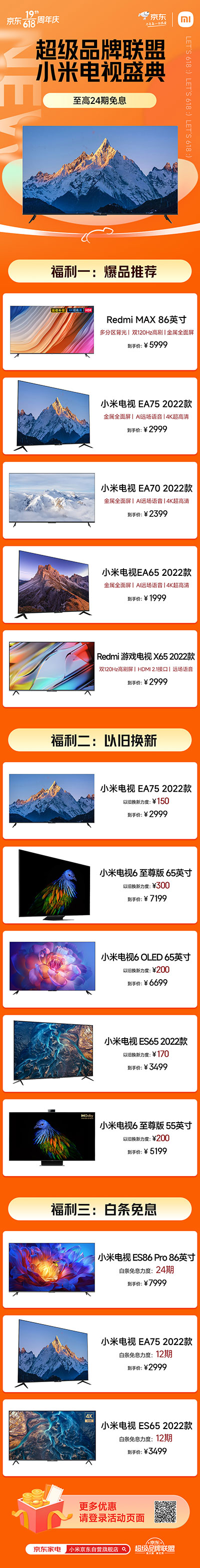 “感動人心,價格厚道”,是小米始終如一的堅持,小米將為用戶持續(xù)帶來質(zhì)優(yōu)價好的高新技術(shù)產(chǎn)品。本次“超級品牌聯(lián)盟小米電視盛典”京東618大促活動將持續(xù)至6月3日,除上市介紹的幾款優(yōu)質(zhì)爆品外,還有更多小米電視機型參與到了本次大促中,用戶可根據(jù)自身需求選擇更心儀的機型,可點擊文末鏈接查看活動詳情。