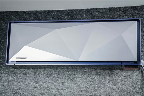 開機(jī)后,可以看到整個面板會往外延伸并向上揚起,猶如科技飛船艙門開啟時的狀態(tài),絢麗美觀。面板上浮后,可以看到出風(fēng)口處以及葉片面積比一般的空調(diào)更寬,這樣有利于大風(fēng)量擴(kuò)散到整個室內(nèi)。