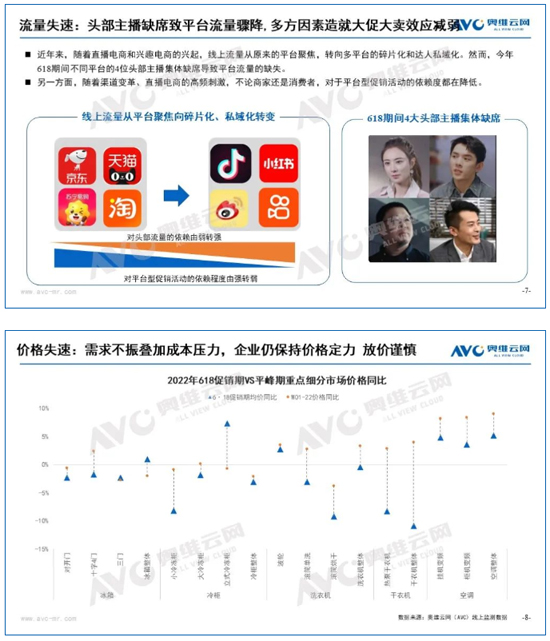 流量失速:近年來(lái),隨著直播電商和興趣電商的興起,線上流量從原來(lái)的平臺(tái)聚焦,轉(zhuǎn)向多平臺(tái)的碎片化和達(dá)人私域化。然而,今年618期間不同平臺(tái),李佳琦、薇婭、羅永浩和辛巴這4位頭部主播集體缺席導(dǎo)致平臺(tái)流量的缺失。另一方面,隨著渠道變革、直播電商的高頻刺激,不論商家還是消費(fèi)者,對(duì)于平臺(tái)型促銷活動(dòng)的依賴度都在降低。