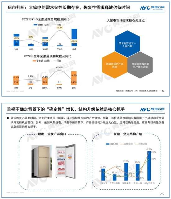總體而言,雖然大家電市場(chǎng)需求的韌性仍在,不過(guò)需求的復(fù)蘇需要時(shí)間,企業(yè)應(yīng)重點(diǎn)關(guān)注剛需、以及強(qiáng)韌性市場(chǎng)的產(chǎn)品供給。例如,抓住冰箱換新和應(yīng)急剛需下小冰箱和冷柜需求爆發(fā)的機(jī)會(huì)窗口。另外,雖然從數(shù)據(jù)看,消費(fèi)不振背景下,產(chǎn)品的結(jié)構(gòu)升級(jí)壓力凸顯,但可以確定的是,結(jié)構(gòu)升級(jí)仍是改善企業(yè)經(jīng)營(yíng)的核心抓手。