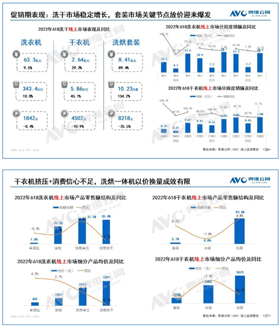 從大家電市場(chǎng)表現(xiàn)來(lái)看,促銷期首周(W23:5月30日-6月5日),各品類也確實(shí)迎來(lái)了“開門紅”。從線上銷額同比來(lái)看,冰箱增長(zhǎng)37.0%,冰柜增長(zhǎng)77.9%,洗衣機(jī)增長(zhǎng)30.4%,干衣機(jī)增長(zhǎng)62.3%?照{(diào)雖然僅小幅上漲2.7%,但從三周對(duì)比來(lái)看,仍為漲幅最大的一周。然而,后兩周表現(xiàn)可謂“靜悄悄”,甚至6.18當(dāng)周也并沒(méi)有帶來(lái)數(shù)據(jù)的“高潮式”波動(dòng)。線上分渠道看,618主場(chǎng)優(yōu)勢(shì)下專業(yè)電商表現(xiàn)穩(wěn)健,流速失速和策略變化平臺(tái)電商稍遜一籌。