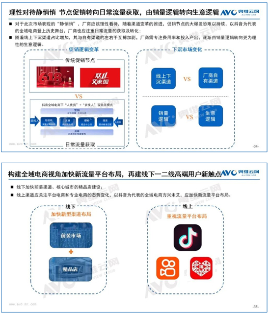 對(duì)于此次市場(chǎng)表現(xiàn)的“靜悄悄”,廠商應(yīng)該理性看待,隨著渠道變革的推進(jìn),促銷節(jié)點(diǎn)的大爆發(fā)恐難以持續(xù),以抖音為代表的全域電商登上歷史舞臺(tái),廠商也應(yīng)注重日常流量的獲取及轉(zhuǎn)化。而隨著線上下沉渠道占比增加,其與自有渠道的左右手互搏加劇,廠商需關(guān)注費(fèi)用率和投入產(chǎn)出,逐漸由銷量邏輯轉(zhuǎn)向更為理性的生意邏輯。