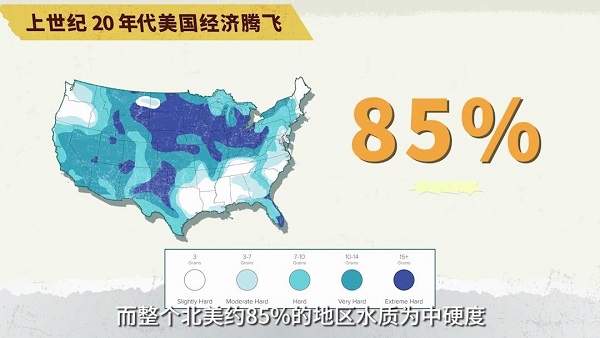 全屋凈水作為舶來品,最早興起于美國。20世紀20年代,率先完成了第二次工業革命的美國,經濟實現了跨越式騰飛,人們對于生活品質的要求也越來越高。然而,整個北美地區,約85%的地區水質為中硬度,導致很多家庭出現管道、熱水器等結垢現象,家用電器能效降低;人們洗澡后皮膚干癢、頭發脫落......水質太硬給當時人們的生活帶來了諸多不便。