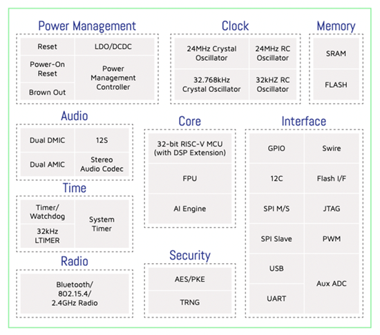 TLSR9系列SoC支持多種先進(jìn)的IoT連接技術(shù)規(guī)范,包括經(jīng)典藍(lán)牙、藍(lán)牙低功耗、藍(lán)牙Mesh、Zigbee、Apple HomeKit、Apple Find My、Thread、Matter、2.4GHz專有協(xié)議及各類RTOS,且能實(shí)現(xiàn)部分多協(xié)議并行操作。該芯片內(nèi)置了先進(jìn)的32位RISC-V MCU,集成了DSP和浮點(diǎn)運(yùn)算擴(kuò)展指令,并搭載了獨(dú)立的低功耗AI引擎對(duì)傳感器和語音信號(hào)進(jìn)行實(shí)時(shí)處理。TLSR9系列SoC現(xiàn)已獲得Thread和PSA雙重安全認(rèn)證。自2021年中量產(chǎn)以來,TLSR9系列SoC已累計(jì)出貨數(shù)百萬片,被客戶廣泛應(yīng)用于各類智能終端產(chǎn)品,包括無線音頻設(shè)備、可穿戴設(shè)備、Apple Find My網(wǎng)絡(luò)配件、智能醫(yī)療設(shè)備、智能遙控器、PC外設(shè)及眾多其他低功耗AIoT設(shè)備。