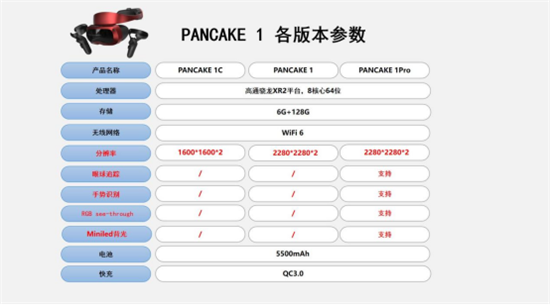 PANCAKE 1C單眼分變率1600x1600 1058PPI,首發(fā)價2999元;PANCAKE 1單眼分辨率2280x2280 1512PPI,首發(fā)價3999元;PANCAKE 1Pro作為PANCAKE 1的升級版本,分辨率相同,同時支持眼球追蹤,手勢識別、RGB see-through、miniled背光功能,預計在年底上市發(fā)售價格目前暫未透露。PANCAKE 1C和PANCAKE 1將在8月26日開啟預售,連續(xù)打卡320天,全額返還購機款。三款機型其余配置相同,主推機型PANCKE 1。