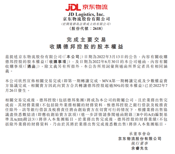 據相關人士表示,標的股份交割后,雖然德邦實控人發生變更,但未來德邦還將繼續保持品牌和團隊獨立運營,德邦的團隊和服務的穩定性并不會受到影響。