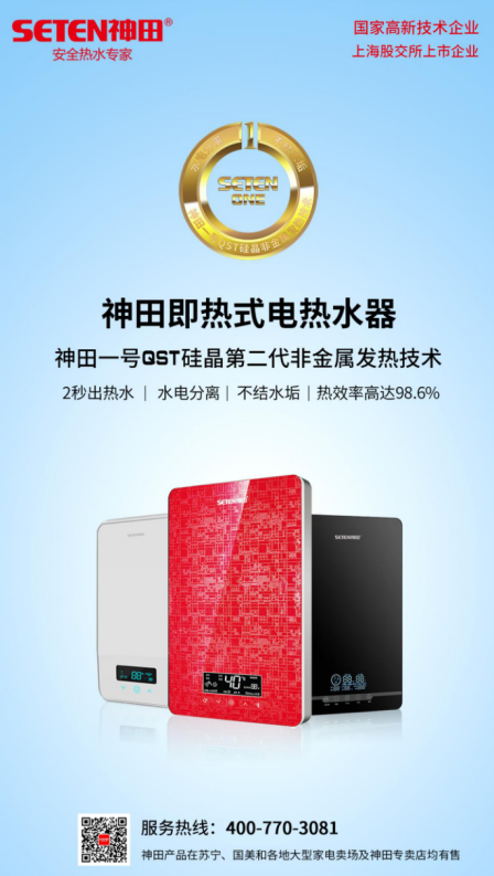 黃建岳表示,神田即熱式產品選擇了“硅晶非金屬發熱技術+水電雙調全恒溫技術”的組合,產品競爭力極強,也將引導行業的技術競爭由發熱技術的競爭上升到恒溫技術的競爭。