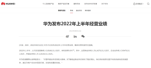 華為輪值董事長胡厚崑表示:“盡管終端業務受到較大影響,ICT基礎設施業務仍保持了穩定增長。我們將積極抓住數字化和低碳化的發展趨勢,通過為客戶及伙伴創造價值,實現有質量的發展。”