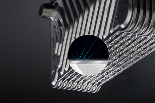 而慶東納碧安通過在冷凝技術上實現了“同向順流”這一技術創新,攻克了冷凝水腐蝕的痛點。通過獨特的燃燒設計,慶東納碧安實現了讓火焰向下燃燒,于是燃燒生成的煙氣變得自上而下流動,也一樣自上而下流動的冷凝水這時不再與煙氣一起結合成垢,反而是起到了沖刷清洗的效果,讓二者最終一同排出。同向順流的冷凝技術大大降低了冷凝壁掛爐的維護成本,也讓產品的使用壽命可以變得更長。