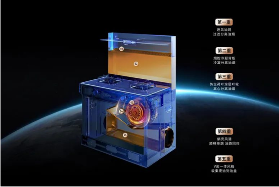 煙機模塊配備了22m3/min的持久大風量,利用低空寬域攏煙,在15-25cm黃金控煙區域,迅捷吸走油煙,輕松應對爆炒時刻;采用直流變頻電機賦予煙機突破阻礙的力量,在需要強力排風的時刻能釋放出高達1000Pa的最大靜壓,對比老款性能提升29%,強勢應對烹飪高峰會出現的煙道擁堵問題;搭載深V型虹吸式高負壓風道系統,防止油污的擴散;五重油煙分離,不積油更潔凈。