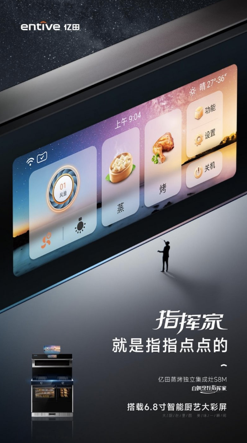 縱向上,在年輕人喜聞樂見的人機交互智能體驗上,億田S8M實現(xiàn)了業(yè)內(nèi)罕見的“言屏雙控”。所謂“言”,即S8M內(nèi)置天貓精靈AliGenie系統(tǒng),通過對話即可下達操控指令,無論是蒸箱、烤箱、燈光等功能模塊,還是天氣查詢、音樂播放等娛樂功能,皆可“張口就來”。