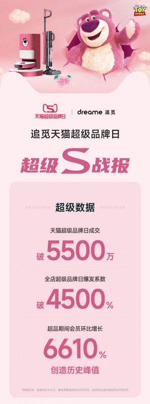 “天貓超級品牌日”是阿里平臺最大的品牌聯合營銷陣地,能夠為全球頂尖品牌提供一個極致創新的舞臺。追覓科技是智能生活家電領域多品類立體布局的全球化創新科技公司。此次合作,雙方充分展現了自身優勢,形成品牌與消費者的深度鏈接,為品牌帶來聲量和銷量的雙重爆發。