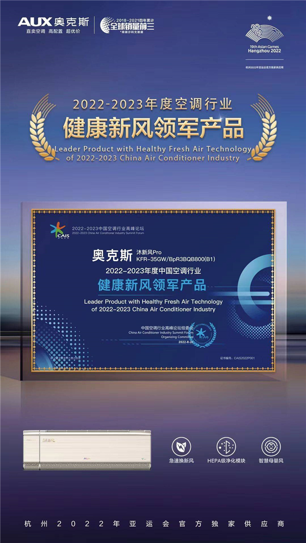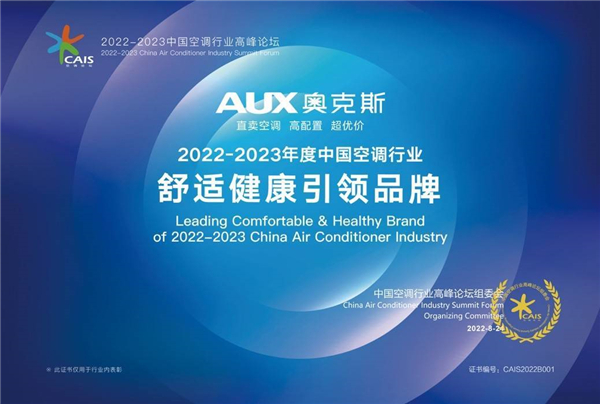 2022年,奧克斯空調全新推出四季新風、舒爽風、奧知凈等多款主打舒適健康的產品,以多元化產品矩陣,充分滿足不同場景、不同客群的空調使用需求,此次獲得“2022-2023年度中國空調行業舒適健康引領品牌”稱號,可謂實至名歸。