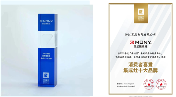 在2022品牌之夜—金瑞獎(jiǎng)集成家居品牌頒獎(jiǎng)盛典上,莫尼榮獲“2022年度消費(fèi)者喜愛(ài)集成灶十大品牌”及“2022年度集成家居數(shù)字化發(fā)展先鋒品牌”兩大榮譽(yù)稱(chēng)號(hào)。