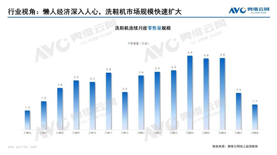 就行業發展歷程而言,洗鞋機市場目前依舊處于市場導入期階段。根據奧維云網(AVC)線上監測數據,2022年1-8月洗鞋機規模突破30萬臺。但從分月度走勢來看,洗鞋機作為導入期產品,市場規模的增長較為平緩。