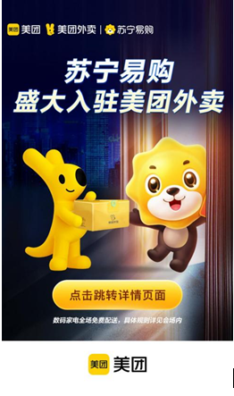 10月21日,蘇寧易購宣布與美團達成戰略合作,成為正式入駐美團平臺的首家家電3C品類大型連鎖品牌。