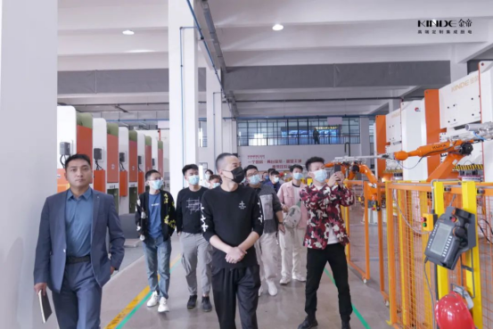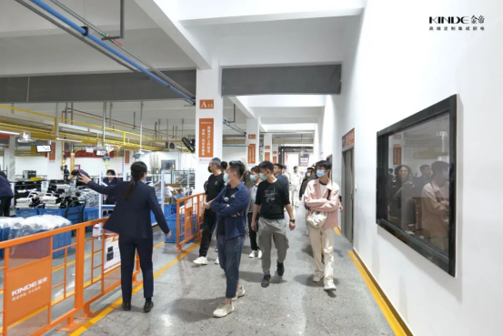 金帝家裝渠道部部長張煒峰與商務經理謝婷帶領金帝金標設計師聯盟黃石考察團走進5G智能車間,為大家詳細講解產品從生產制造、組裝、入庫出庫的全部過程,展現金帝智能車間的強大制造實力。