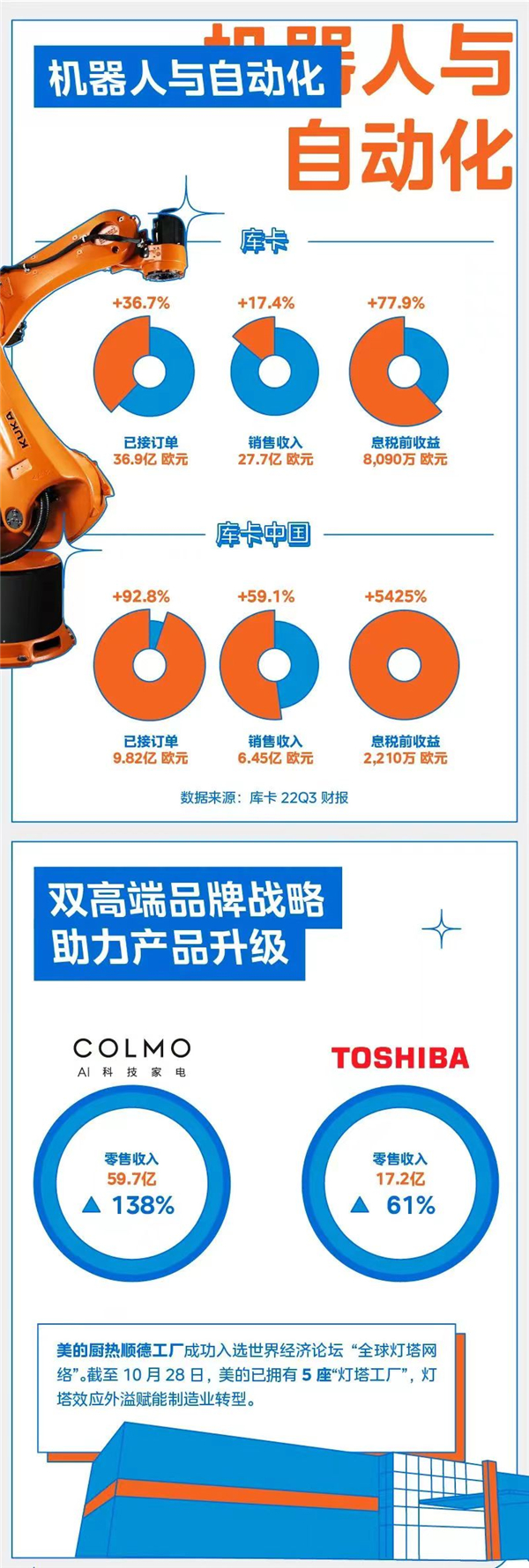進入2022年,外部環境持續惡化,世界經濟下行壓力增加;國內市場,發散的疫情嚴重影響了需求的釋放,中國家電行業面臨重大沖擊。對此,美的集團再次進行戰略調整,加速加碼B端轉型。前三季度,B端核心業務均保持高速增長。