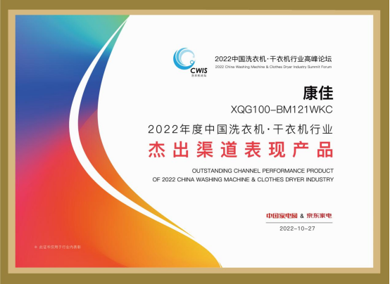 正是憑借這些差異化創新優勢,康佳臻彩系列洗烘套裝XQG100-BBC12D01S+KD100-R2DS榮獲了“智慧臻彩洗烘引領產品”獎。