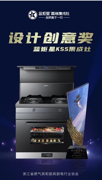 經過激烈角逐和層層評選,藍炬星集成灶——K5S在2022年度優秀創新產品評選中榮獲:「設計創意獎」