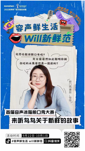 雖然與冠軍只有一步之遙,但是“鳥鳥文本”話題霸占熱搜總榜第一的位置,這也是總決賽第一個登頂的熱搜話題。她被魯豫奉為“文本之神”,用最平靜的語氣炸最猛的場子。此前,在容聲世界杯新品發布會上,鳥鳥就憑借新鮮的故事為容聲冰箱實力打call,為粉絲帶來了一場精彩絕倫的冰箱生活秀,令人回味無窮。