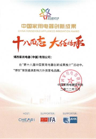 博世家電榮獲“年度最具影響力外資家電品牌”
